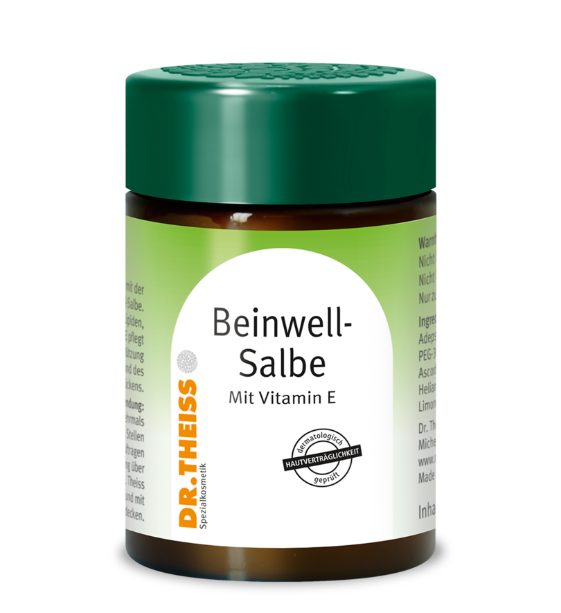Verwöhnen Sie Ihre Haut mit der wohltuenden Dr. Theiss Beinwell-Salbe. Die Kombination aus Lipiden, Beinwelltinktur und Vitamin E pflegt die Haut. Zur Pflege und Unterstützung bei beanspruchten Beinen und des strapazierten Rückens.