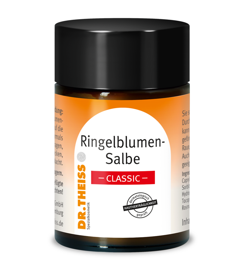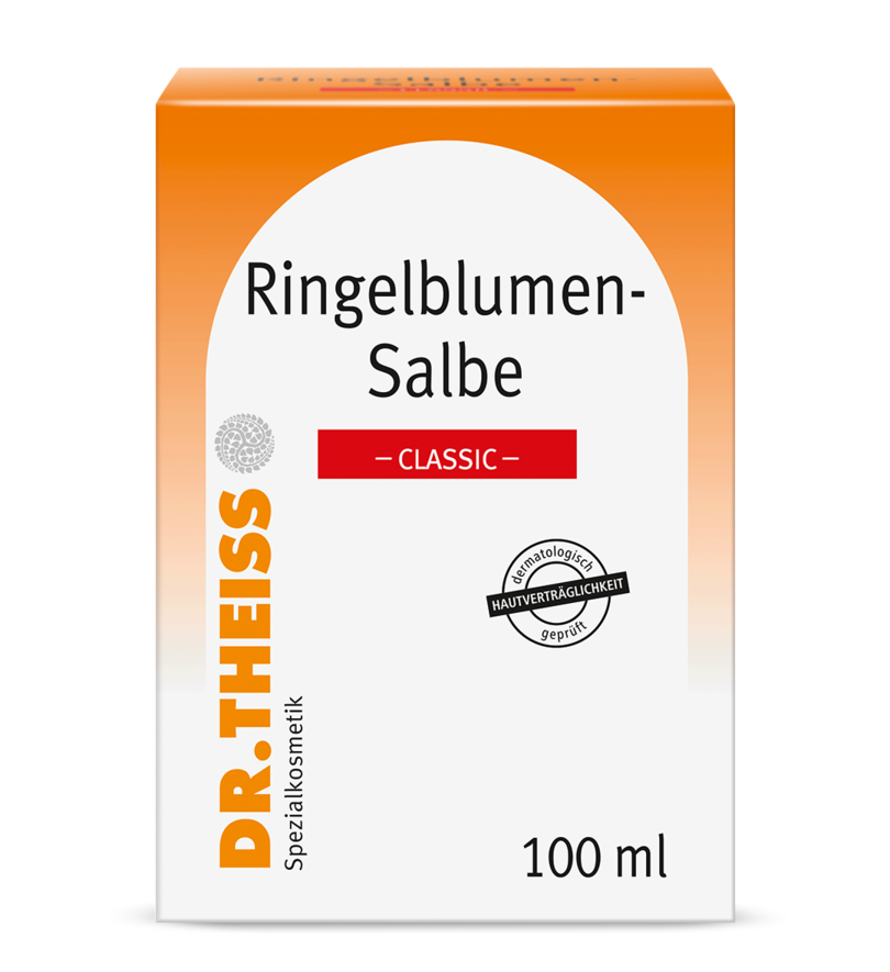 Dr. Theiss Ringelblumen-Salbe classic auf raue, rissige Haut mehrmals täglich auftragen, eventuell mit Mull abdecken, besonders über Nacht. Produkt nicht anwenden bei einer Überempfindlichkeit oder bestehenden Allergie gegen Ringelblumen oder andere Korbblütengewächse.