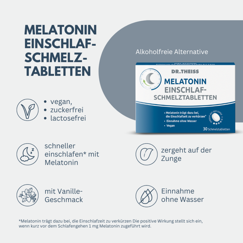 Dr. Theiss Melatonin Einschlaf-Schmelztabletten, Nahrungsergänzungsmittel mit Melatonin, mit Süßungsmittel.